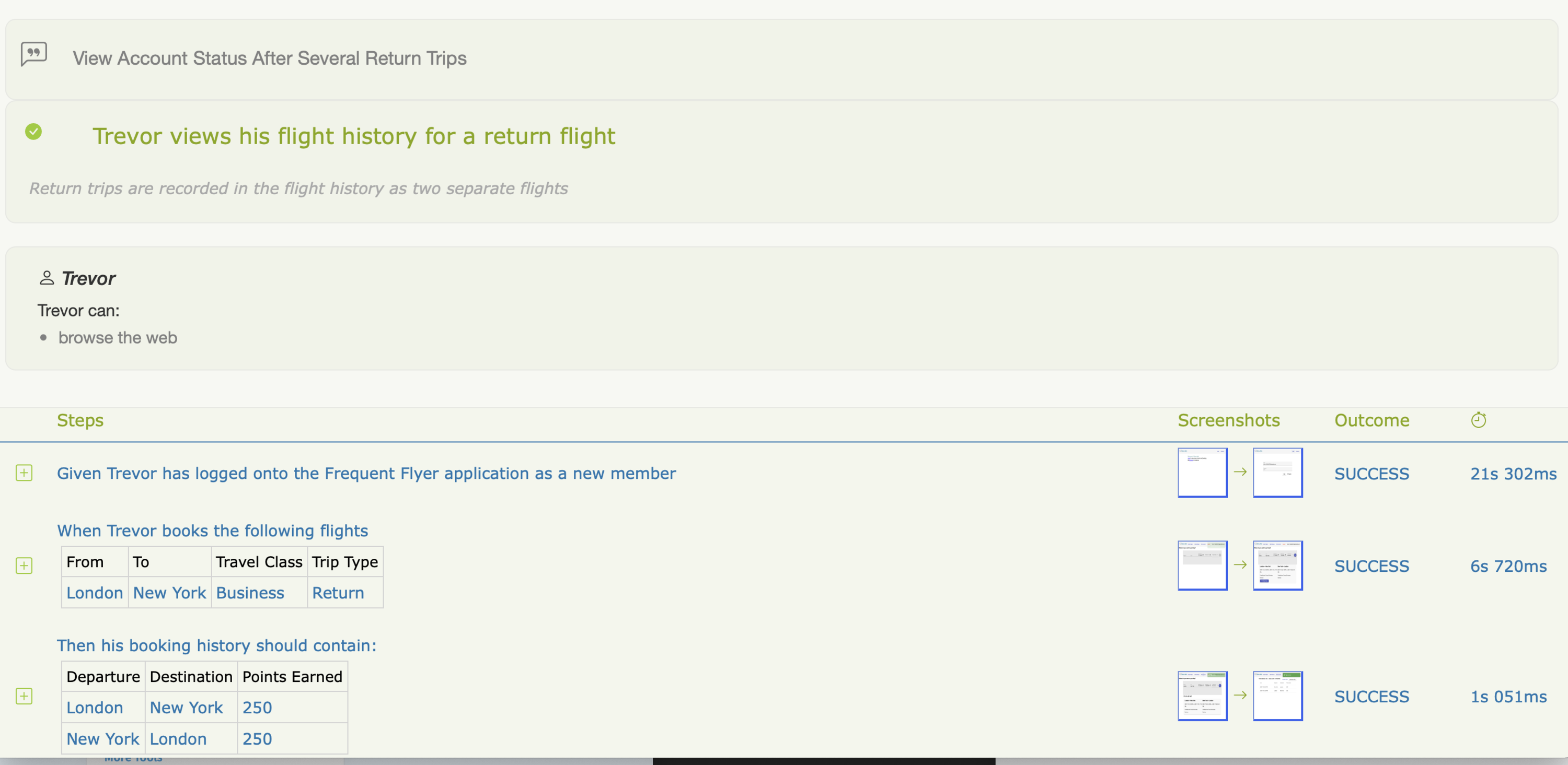Next, you record these rules and examples in a structured, actionable format. We call these "executable specifications", because they are requirements that can be executed. We also call these "living documentation", because they document exactly what the system currently does.