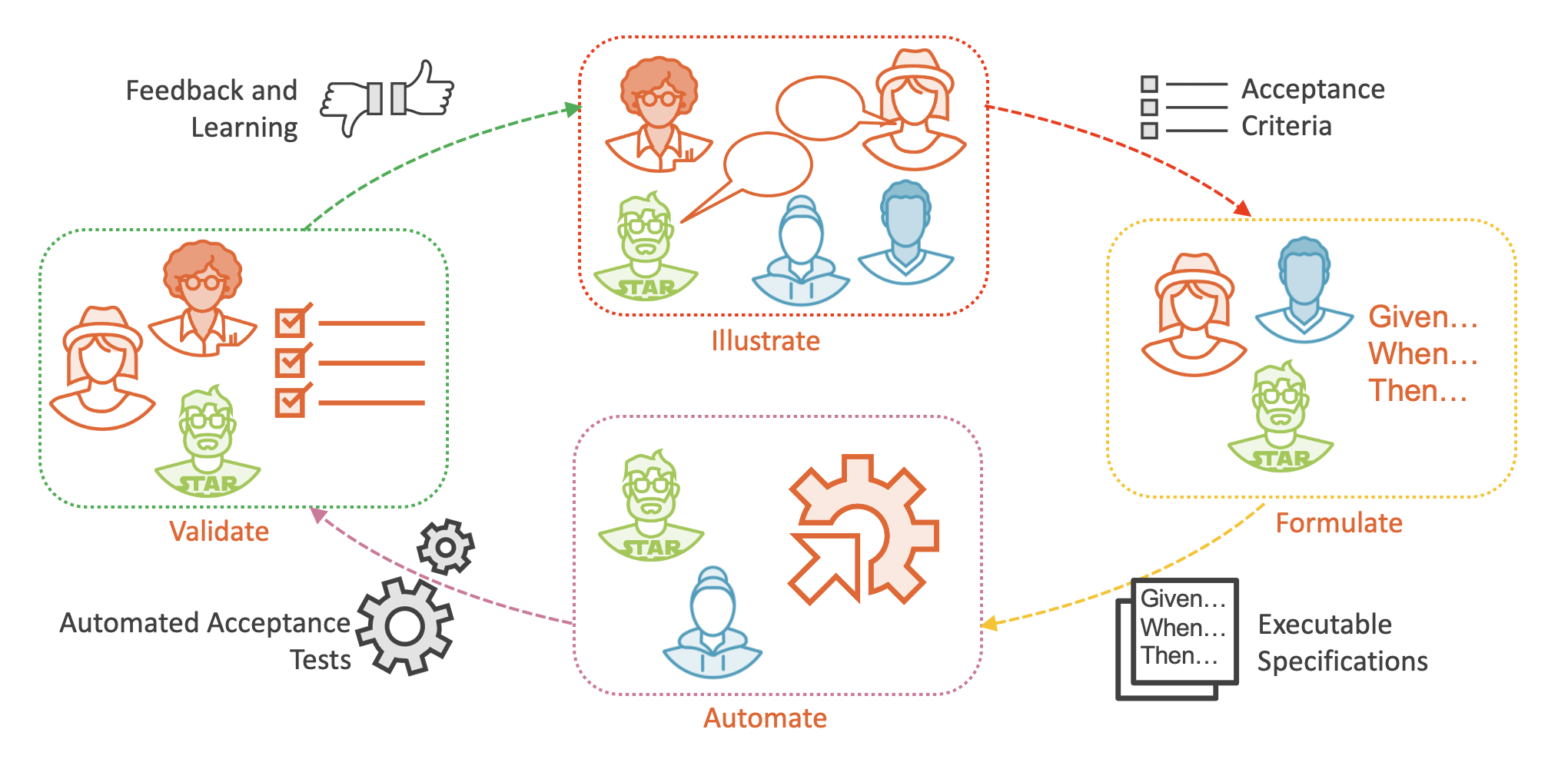 In its simplest form, the BDD process looks something like this: