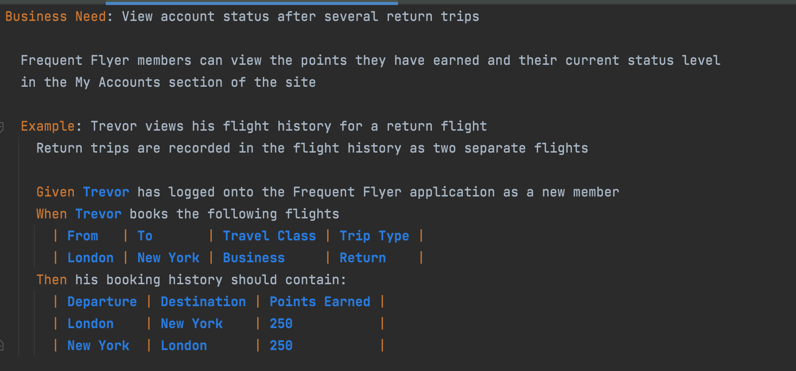 👉 Format is less important. Gherkin (the Given..When..Then notation you can see further down) is a popular format to do this in, but there are other options too.